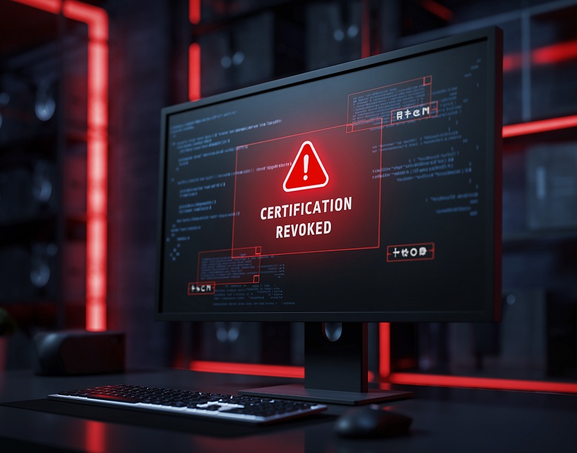 • Badge replaced with “CERTIFICATION REVOKED” notice
